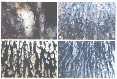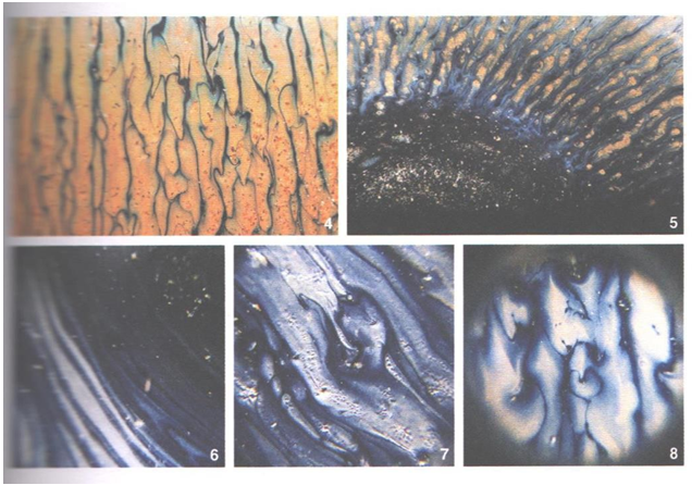 Фото 6, 7, 8. Кристаллический узор пиалы Тухао под увеличительным стеклом (увеличение в 60 раз).