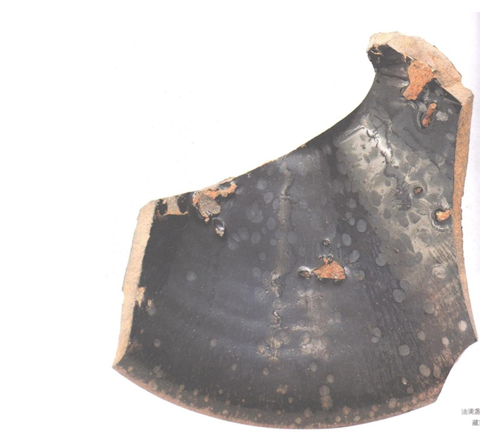 Часть пиалы Юди. На некоторых «масляных каплях» заметно радужное семицветное сияние (похоже на сияние у пиал Яобянь).