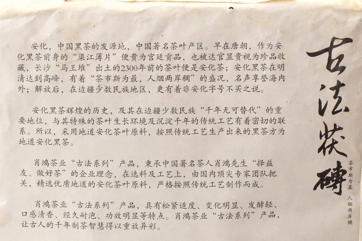 Хэйча 2011 года – хорошо выдержанный чёрный чай из первоклассного сырья. Подойдет для церемониальных, вдумчивых чаепитий, исследования вкуса настоящего старого хэйча и путешествия по волнам чайных состояний.