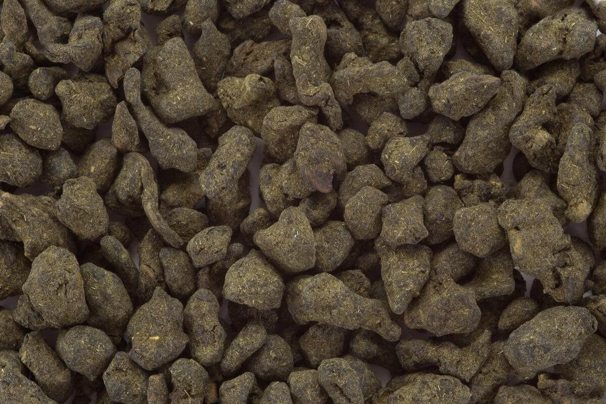Для производства этого сорта чайное сырье высушивают, перемалывают и добавляют в полученный порошок экстракты целебных трав, таких как солодка, бессмертник и др. После этого формируются небольшие катышки, которые обваливают в измельченном экстракте женьшеня и высушивают. В результате получаются мелкие зеленоватые камушки, обладающие поразительными свойствами.