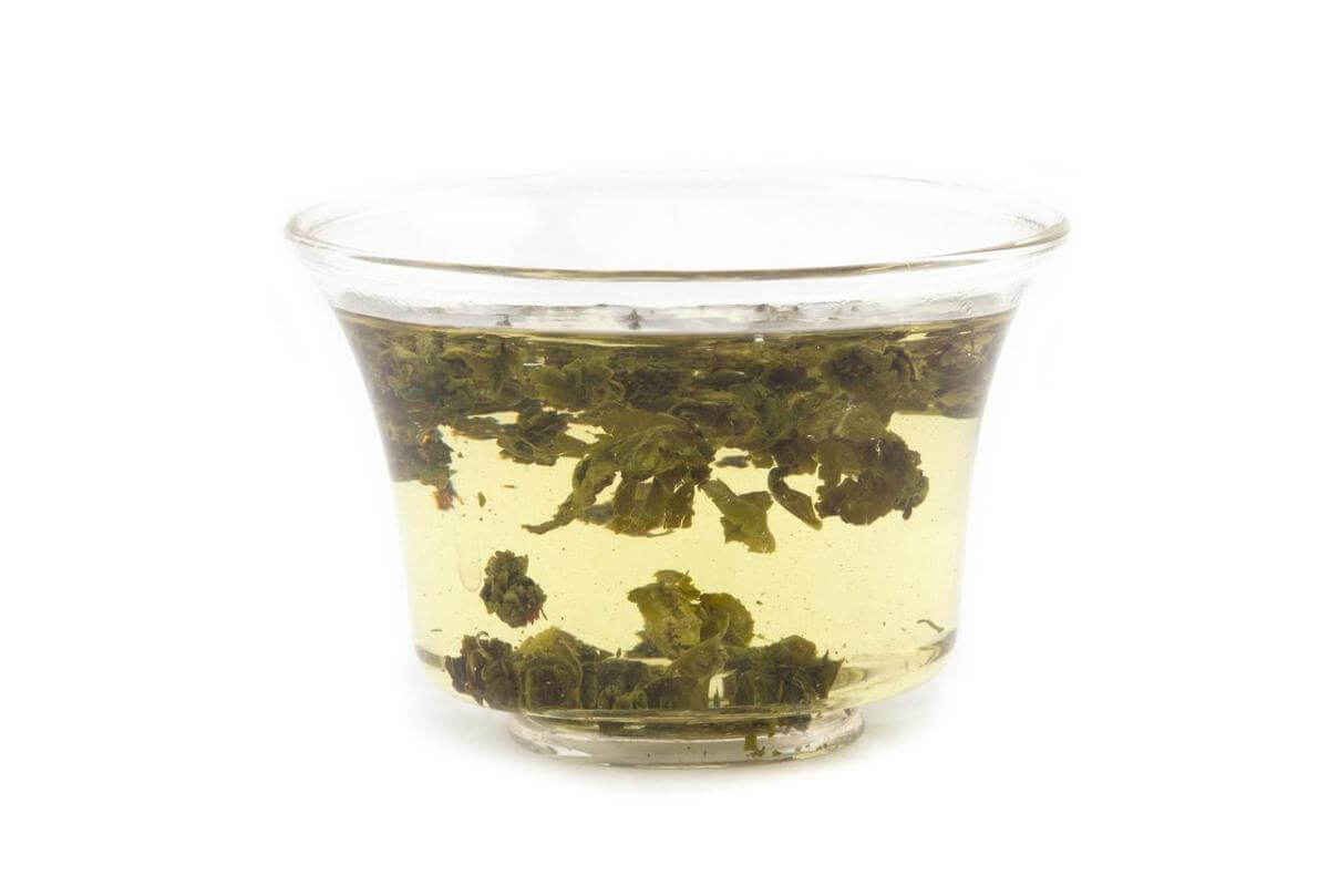 - Процесс завершается легкой прожаркой в специальных котлах для остановки ферментации. При заваривании плотно скрученные чаинки постепенно изящно раскрываются, а цвет листа приобретает характерный золотистый оттенок с легкой зеленцой.